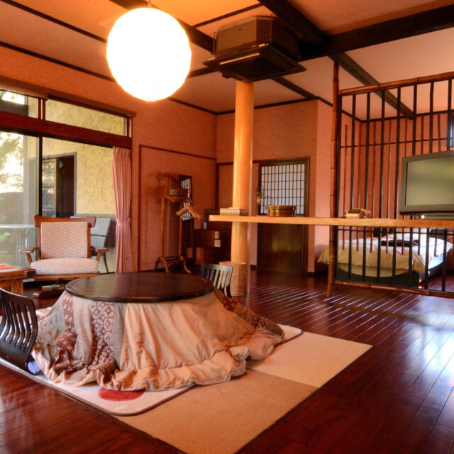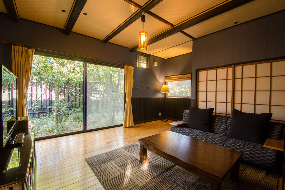 古民家風、全客室離れの温泉旅館です。 天然温泉の掛け流し内湯に露天風呂、お部屋によっては、サウナや岩盤浴などをご用意しております。