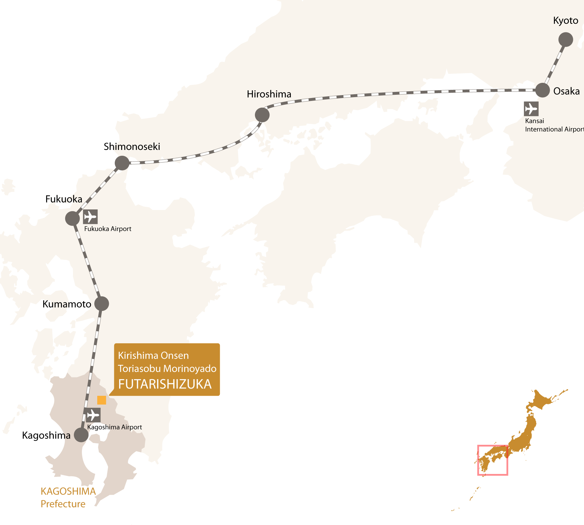 霧島連山のふもと、霧島温泉郷。鳥遊ぶ森に点在する母屋と離れ五棟。
